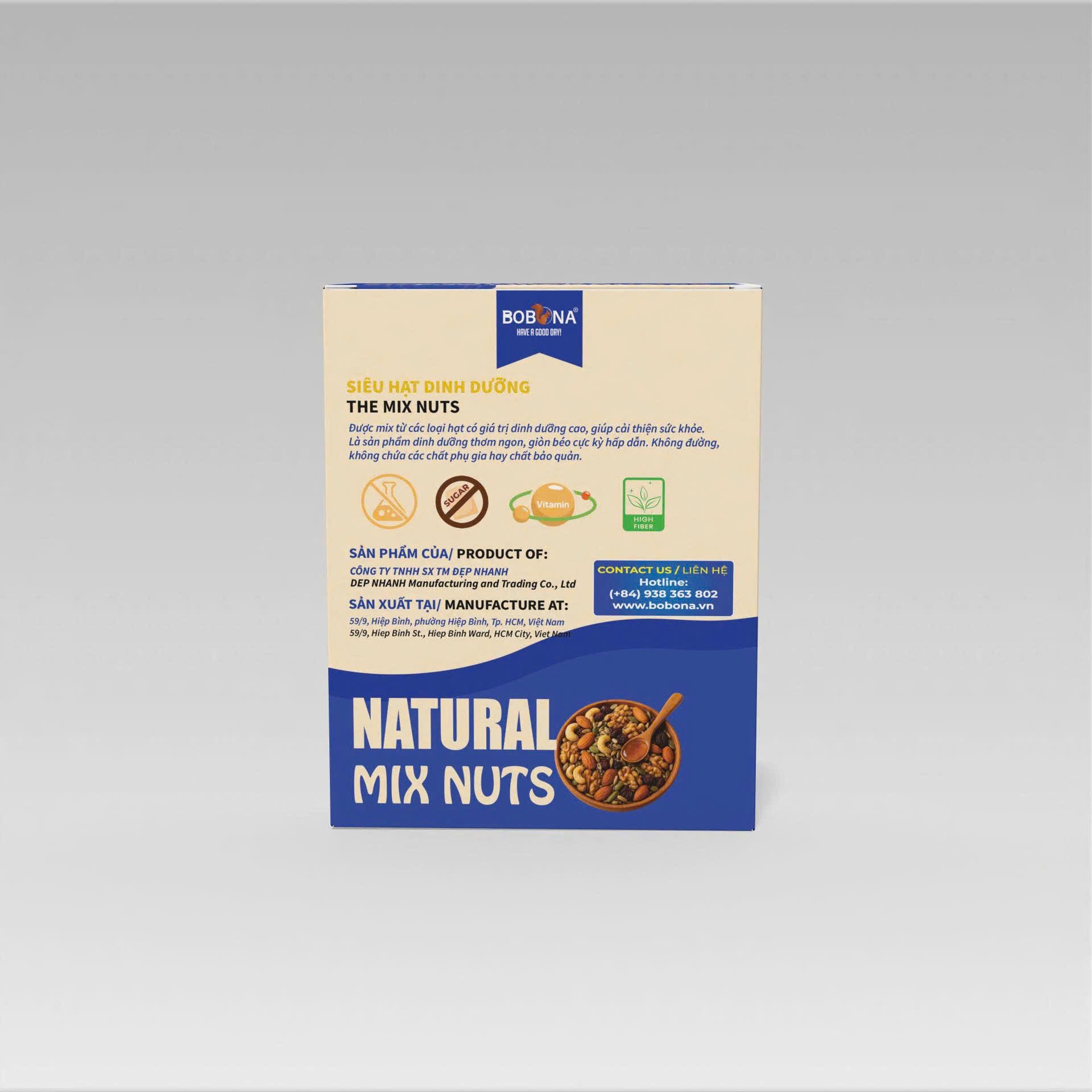 BOBONA là một thương hiệu mới xuất hiện gần đây nhưng đã đem lại ấn tượng tốt cho người tiêu dùng về sản phẩm chất lượng, hàm lượng dinh dưỡng cao có trong sản phẩm như: chất xơ cao, vitamin, Lipid, Natri, Calci, Kali, Sắt, Kẽm và protein từ thực vật hỗ trợ ăn kiêng, giảm cân. Đặc biệt, sản phẩm không chứa chất bảo quản, tốt cho sức khỏe nên rất được lòng nhiều khách hàng khó tính.